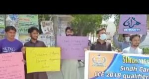 حيدرآباد ۾ چٽاڀيٽي امتحان جي اميدوارن جو مظاهرو