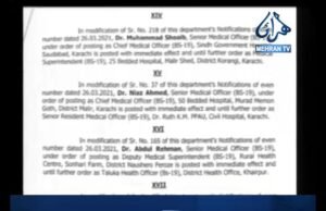 صحت کاتي ۾ ڊاڪٽرن جون مقرريون ۽ بدليون