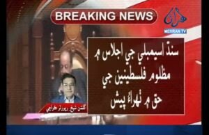ٽيليٽاڪ گلشن شيخ/سنڌ اسيمبلي ۾ فلسطينين جي حق ۾ ٺهراءُ پيش