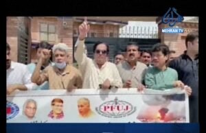 سکر: صحافين پاران فلسطين جي حمايت ۾ مظاهرو