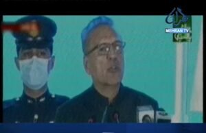 ايوان صدر ۾ يومِ آزادي جي تقريب، صدر جهنڊو ڦڙڪايو